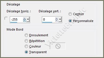 **Calques/Dupliquer Image/Miroir/Miroir horizontal **Calques/Dupliquer Effets/Effets d'image/Décalage