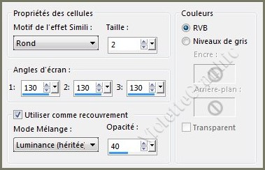 réglages suivants :