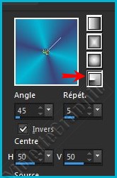 Configurer un dégradé linéaire angle: 45°/Répétitions: 5/Inverser coché