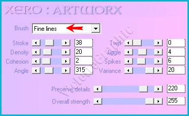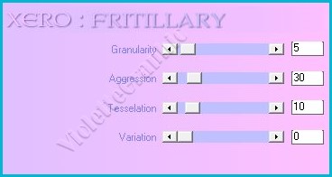 Les Tutoriels Traduits de Lica_Cida avec son aimable autorisation *** Merci Lica_Cida de m'avoir accordé l'exclusivité de ces traductions *** *** Ces traductions m'appartiennent Il est strictement interdit de les copier ou de les distribuer sur le Net *** *** Tag Daniela *** Ce tutoriel a été réalisé dans PSP X8 mais peut être effectué dans les autres versions PSP *** Matériel nécessaire pour effectuer ce tutoriel: Matériel: Tubes: Mina@.mistpaesaggio.5.5.15 tube2991_mulher_mara_pontes Vase-255-Azalee Script_ 01 One Step Photo Fix \ do próprio psp ( Placer dans le dossier Scripts Réglementés de Corel PaintShop Pro) Marca D'água Effets de PSP *** Filtres : ICI VM Toolbox Xero *** Matériel : *** Les tubes sont offerts à usage personnel Vous n'avez pas la permission de placer ces tubes sur un autre site sans la permission du créateur *** Pfeil Cette flèche pour marquer votre ligne Clic gauche pour la déplacer *** ** Ouvrir les tubes , les dupliquer et fermer les originaux 1 - Placer en premier-plan la couleur #03b8d5 et en arrière-plan la couleur #3b457a Dans la Palette de Style Configurer un dégradé linéaire angle: 45°/Répétitions: 5/Inverser coché Centre: hor.=50/ vert.=50 **Ouvrir une image transparente de 900 x 550 pixels Remplir de dégradé **Réglages/Flou/Flou gaussien : rayon : 28 2 - Sélection/Sélectionner Tout Activer le tube Mina@.mistpaesaggio.5.5.15.pspimage Edition/Copier/Edition/Coller dans la sélection Sélection/Ne rien sélectionner **Effets/Effets d'image/Mosaïque sans jointure réglages par défaut **Réglages/Ajouter du bruit/Correction de l'Artefact JPEG réglages suivants : ** Effets/FM Tile Tools /Blend Emboss par défaut 3 - Effets/Effets de Distorsion/Coordonnées Polaires réglages suivants : 4 - Edition/Coller le tube Mina@.mistpaesaggio.5.5.15.pspimage ( il est en mémoire ) Image/Redimensionner à 80%/décocher " Redimensionner tous les calques" **Calques/Fusionner les calques visibles **Réglages/Netteté/Davantage de netteté 5 - Recherchez le script " 01 One Step Photo Fix... " 6 - Effets/AAA Frame/Texture Frame réglages suivants : 7 - Sélection/Sélectionner Tout Sélection/modifier/Contracter de 30 pixels Effets/Effets 3D/Ombre Portée : 0/0/80/40/couleur #000000 Sélection/Ne rien sélectionner **Calques/Dupliquer 8 - Effets/Nick Software /Color Effex Pro 3.0 Complete réglages suivants : Bi-Colors Filters /Color Set/ Cool /Warm 2 Mode de Fusion : Multiplier Opacité à 59% 9 - Image/Ajouter des bordures : 2 pixels couleur #000000 ** Image/Ajouter des bordures : 50 pixels couleur #ffffff **sélectionner à l'aide de la baguette magique 10 - Effets/VM Toolbox / Zoom Blur réglages par défaut Sélection/Transformer la sélection en calque Mode de Fusion : Multiplier 11 - Effets/Xero/Artwork réglages suivants : 12 - Effets/Xero/Fritillary réglages suivants : Sélection/Inverser Effets/Effets 3D/Ombre Portée : 0/0/80/40/couleur #000000 Sélection/Ne rien sélectionner 13 - Image/Ajouter des bordures : 1 pixel couleur #000000 Edition/Copier ** Image/Ajouter des bordures : 50 pixels couleur #ffffff **sélectionner à l'aide de la baguette magique Edition/Coller dans la sélection **Réglages/Flou/Flou gaussien : rayon : 28 15 - Répéter les n° 11 et 12 Sélection/Inverser Effets/Effets 3D/Ombre Portée : 0/0/80/40/couleur #000000 Sélection/Ne rien sélectionner 16 - Activer le tube tube2991_mulher_mara_pontes.pspimage Edition/Copier/Edition/Coller comme nouveau calque Placer comme sur l'image finale 17 - Activer le tube Vase-255-Azalee.pspimage (voir tube vase ) Edition/Copier/Edition/Coller comme nouveau calque Placer comme sur l'image finale 18 - Image/Ajouter des bordures : 1 pixel couleur #000000 Image/Redimensionner à 950 x 650 pixels 19 - Placer le filigrane de Lica Cida 20 - Placer votre signature **Calques/Fusionner Tout 21 - Exporter en JPEG Optimisé *** *** Traductions ©Violette Octobre 2015 ***