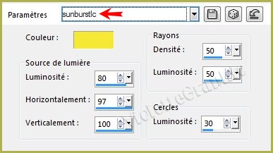**Effets/Effets d'éclairage/halo réglages suivants :