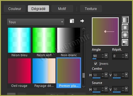 linéaire angle: 90°/Répétition: 0/Inverser coché