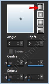 **Configurer un dégradé linéaire angle: 0°/Répétition: 0/Inverser coché