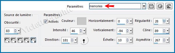 réglages suivants : **Appliquer le preset