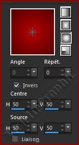 configuré : halo/Répétition: 0 /Inverser coché Centre: hor.=50/ vert.=50 Source: hor.=50/ vert.=50 6 - Sélection/Sélectionner Tout Activer le tube