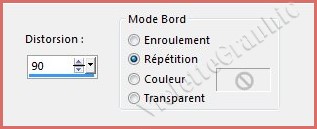 : Vers la gauche = 100 Répéter = vers la droite = 100 **Calques/Dupliquer Image/Miroir/Miroir vertical Image/Miroir/Miroir horizontal