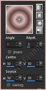 halo angle: 0°/Répétitions: 3/Inverser non coché Centre: hor.= 50/ vert.= 50 Source: hor.= 50/ vert.= 50