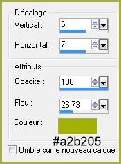 12 - Effets/Effets 3D/Ombre Portée : 6/7/100/26,73/couleur #a2b205