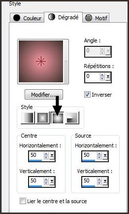 10 - Calques/Nouveau calque Remplir de dégradé halo angle: 0°/Répétition: 0 /case inverser cochée