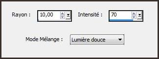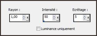 **Réglages/Netteté/Netteté Passe_haut réglages suivants: