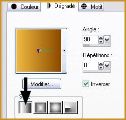 2 - Placer en avant-plan la couleur # 8b4900 et en arrière-plan la couleur #f0b940Configurer un dégradé linéaire angle: 90°/Répétition: 0/Inverser coché