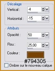 21 - Calques/Nouveau calque Activer l'outil Pinceau et rechercher le pinceau Narah_City_Lights couleur #8b4900 22 - Effets/Effets 3D/Ombre Portée : 1/1/50/1/ couleur #000000