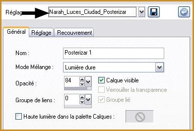 sans quitter la sélection 26 - Calques/Calques de réglages/Postériser : Localiser le preset Narah_Luces_Ciudad_Posterizar et OK
