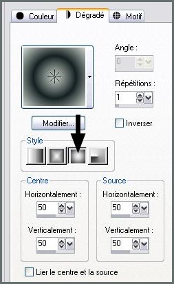 2 - Placer en avant-plan la couleur # 152022 et en arrière-plan la couleur #ccd6cdConfigurer un dégradé halo/Répétition: 1