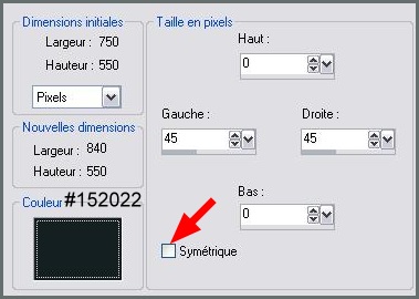 14 - Image/Ajouter des bordures : symétrique décoché/couleur #152022avec ces réglages