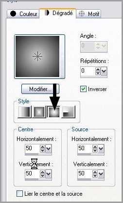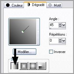 2 - Placer en avant-plan la couleur #232324 et en arrière-plan la couleur #d7d5d6Configurer un dégradé halo/Répétition: 0/inverser coché