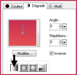 5 - Sélection/Charger/Enregistrer une sélection/charger à partir du disque Charger la sélection Narah_Sel1_illusion.PspSelection Remplir de dégradé linéaire angle: 0°/Répétition: 0 #c63050 et #e55051