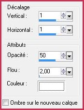 10 - Effets/Effets 3D/Ombre Portée: 1/1/50/2/couleur #ffffff