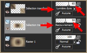 7 - Activer le calque supérieur Couches/Fusionner le calque du dessous Mode de calque: Lumière Dure Opacité à 65%