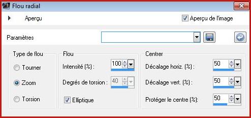 6 - Réglages/Flou/Flou radial réglages suivants :