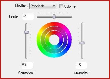**Réglages/Teinte et Saturation/Teinte , Saturation, Luminosité