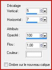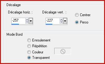 13 - Activer le tube valentin1-01-10-verocreation.pspimageModifier/Copier/Modifier/Coller comme nouveau calque Image/Redimensionner à 50%/décocher " Redimensionner tous les calques" **Effets/Effets d'image/décalage réglages suivants :
