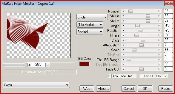 15 - Image/Ajouter des bordures : 40 pixel s couleur #780700Sélectionner la bordure avec la baguette magique ( valeur: RVB /Tolérance et Progressivité à 0 /intérieur) **Effets/Screenworks/Point Array Sélection/Ne rien sélectionner