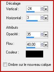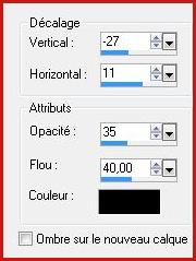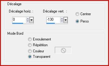 11 - Couches/Dupliquer/Image/Miroir **Couches/Fusionner le calque du dessous **Image/Retourner **Effets/Effets d'image/décalage réglages suivants :