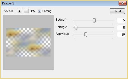 17 - Effets / Ormente's Filter / Drawer 1 réglages suivants : 5 / 5 / 30