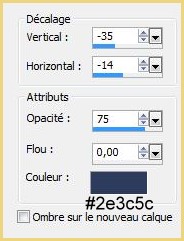 30 - Effets/Effets 3D/Ombre Portée : -35 /-14 /75 /0,00 /couleur #2e3c5c