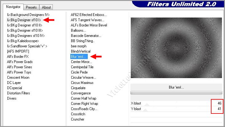 4 - Effets/BKg Designer sf101 / Blur' em!...réglages suivants :