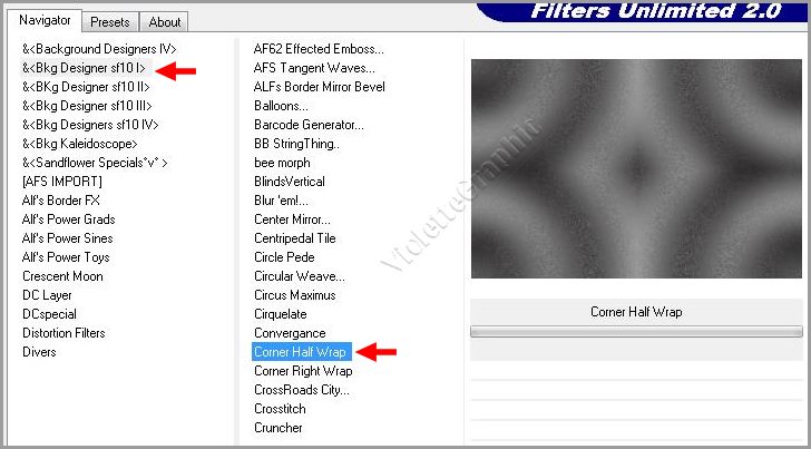 5 - Effets/BKg Designer sf101 / Corner Half Wrap réglages suivants :