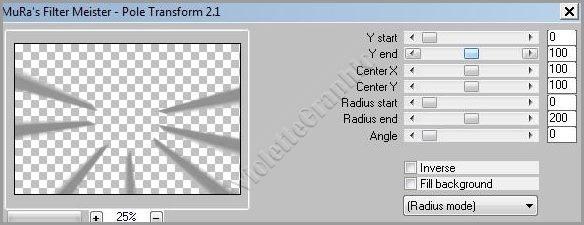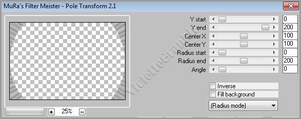 13 - Se placer sur le calque Copie de calque 3 Effets/ MuRa's Meister / Pole Transform réglages suivants : 0 / 200 / 100 / 100 / 0 / 200 / 0