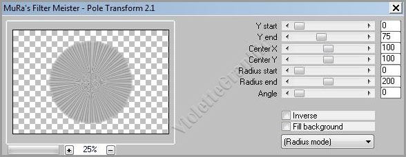 14 - Se placer sur le calque 3 Effets/ MuRa's Meister / Pole Transform réglages suivants : 0 / 75 / 100 / 100 / 0 / 200 / 0
