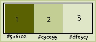 *** 1 - Ouvrir les tubes , les dupliquer et fermer les originaux Vous pouvez utiliser vos autres couleurs 2 - Placer en premier-plan la couleur #5a6102 et en arrière-plan la couleur #c3ce95