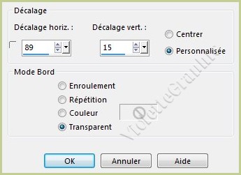 15 - Effets / Effet d'image / Décalage réglages suivants :