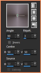 2 - Dans la Palette de Style Configurer un dégradé radial/ angle: 90°/Répétitions : 3/Inverser non coché Centre: hor.=50/ vert.=50 Source: hor.=50/ vert.=50