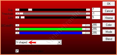 7 - Effets/AP Lignes/ Silverlining /V-shaped réglages suivants :