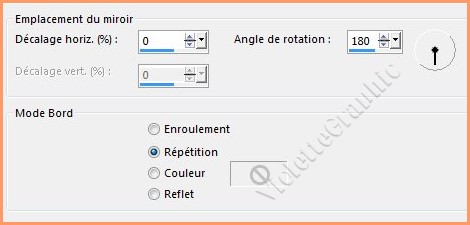 **Effets/Effets de réflexion/Miroir Rotatif réglages suivants :
