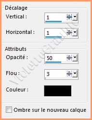 Remplir la couleur #ffffff Sélection/Ne rien sélectionner ** Effets/Effets 3D/Ombre Portée : 1/1/50/1/couleur #000000
