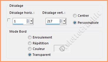 21 - Activer le tube Narah_Deco2_May2017.pspimage **Effets / Effets d'image / Décalage réglages suivants :