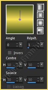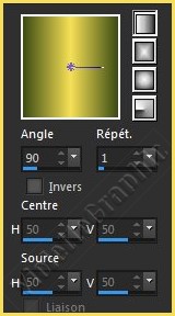 **Dans la Palette de Style Configurer un dégradé linéaire angle: 90°/Répétition: 1/Inverser non coché