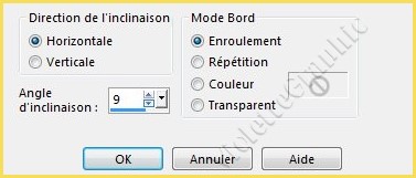 10 - Activer le calque de la sélection transformée **Calques/Dupliquer Effets/Effets géométriques/ inclinaison réglages suivants : Mode de fusion: Eclaircir **Calques/Dupliquer Image/Miroir/Miroir horizontal 11 - Activer le calque du fond Activer le tube Karine_Dreams_Misted_Easter_2923_Avril_2014.pspimage Edition/Copier/Edition/Coller comme nouveau calque