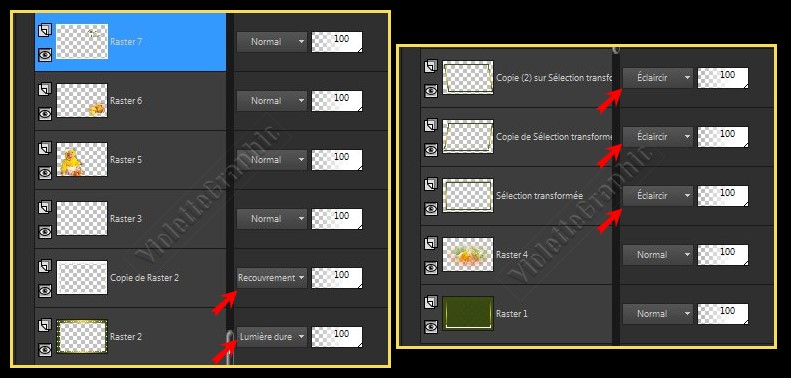 *** **Si vous choisissez d'autres couleurs pour vos réalisations, il faudra adapter les modes de fusion et l'opacité des calques.