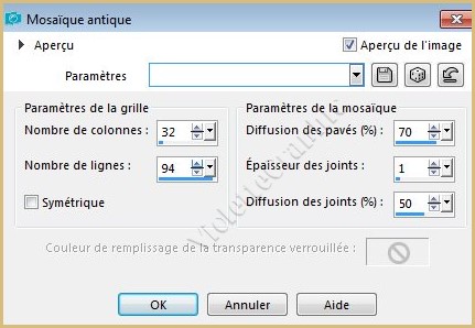 3 - Effets/Effets de Textures/Mosaïque antique réglages suivants :