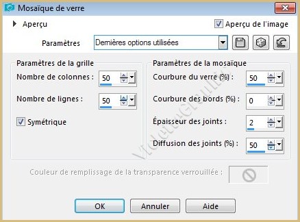 4 - Effets/Effets de Textures/Mosaïque de verre réglages suivants :