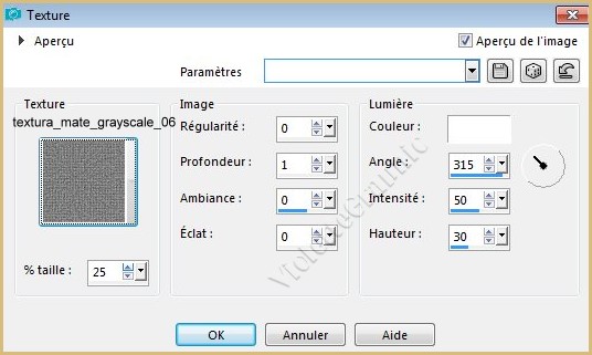 9 - Effets/Effets de Textures/Texture réglages suivants :