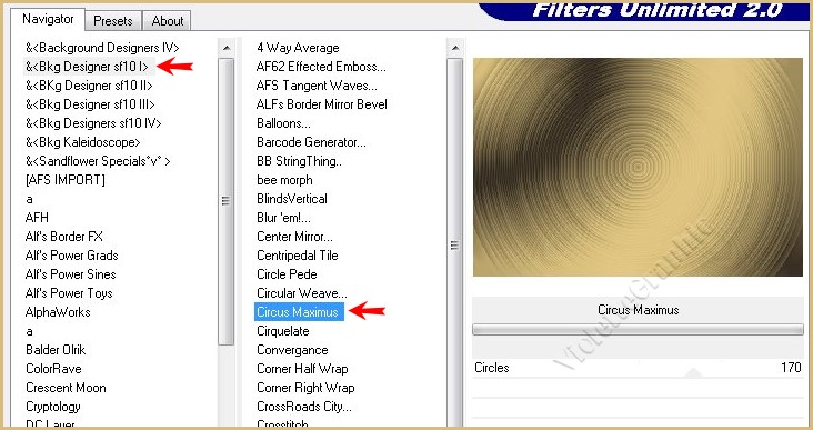 12 - Effets/&< BKG Designers sf10 I > Circus Maximus réglages suivants :
