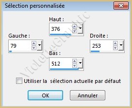 17 - Calques/Nouveau calque Activer l'outil sélection/clic sur Sélection Personnalisée Placer ces chiffres :