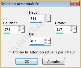 19 - Calques/Nouveau calque Activer l'outil sélection/clic sur Sélection Personnalisée Placer ces chiffres :